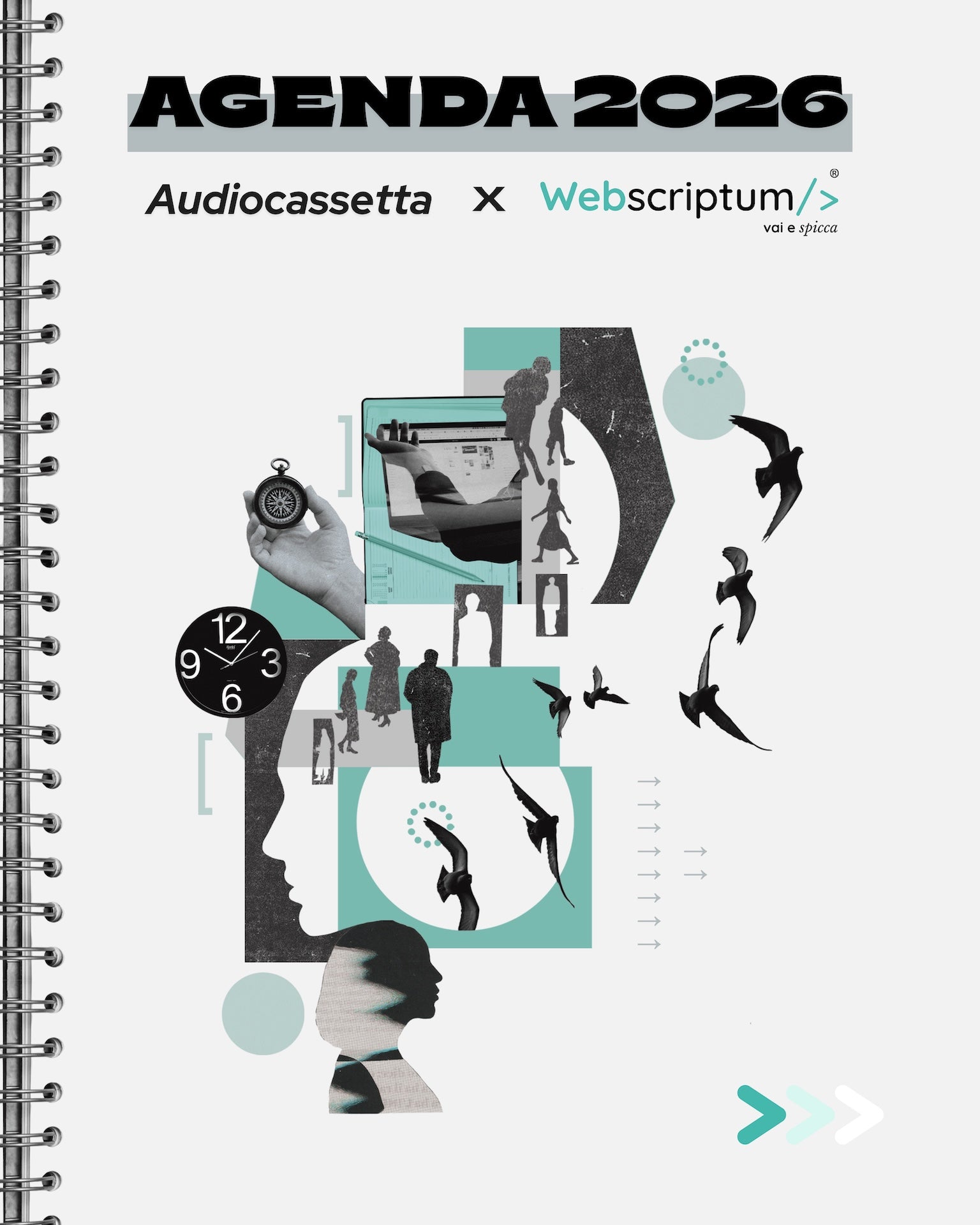 Collage per l'agenda 2026 di Webscriptum, agenzia di marketing e comunicazione.