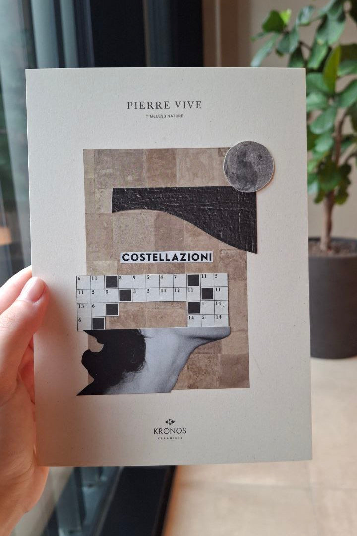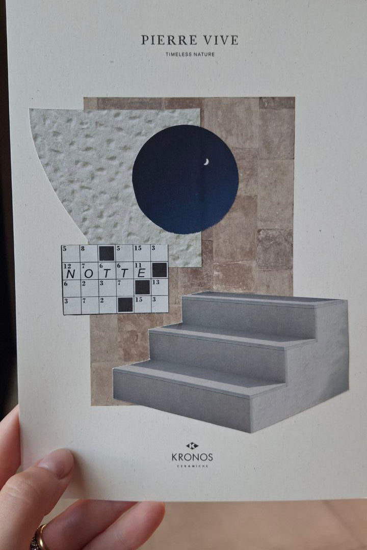 Collage, cadeux per clienti e live collage per Kronos Ceramiche, azienda specializzata in pavimenti e rivestimenti in gres porcellanato.