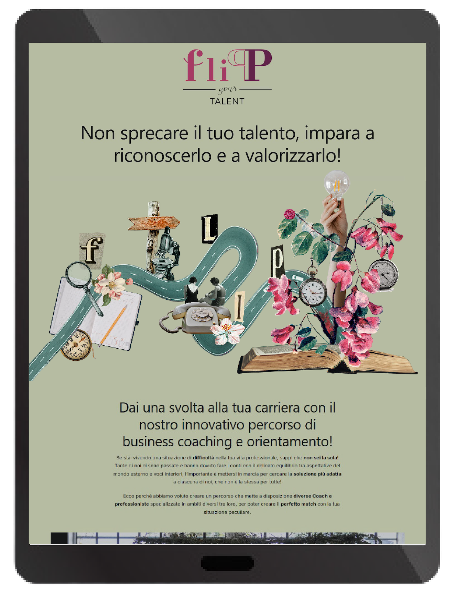 Collage digitale realizzato per il lancio del corso online FLIP Your Talent di Flowerista, agenzia di marketing.