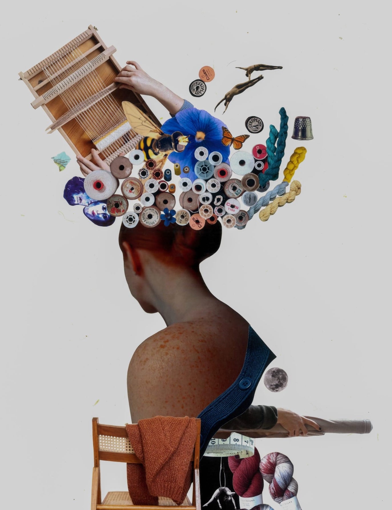 Collage analogico realizzato per la visual identity di Efelidi, brand di artigianato tessile.