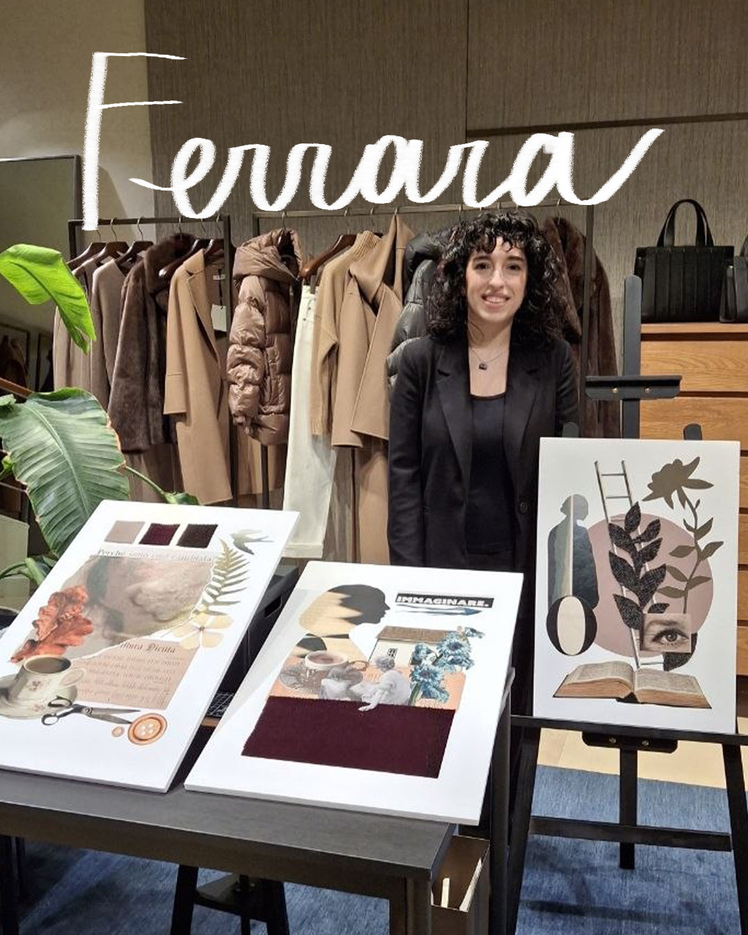 Live collage durante il lancio della collezione autunno / inverno 2025 Max Mara, ispirata all'immaginario delle «indomite eroine». I collage sono stati creati usando tessuti forniti dal brand.