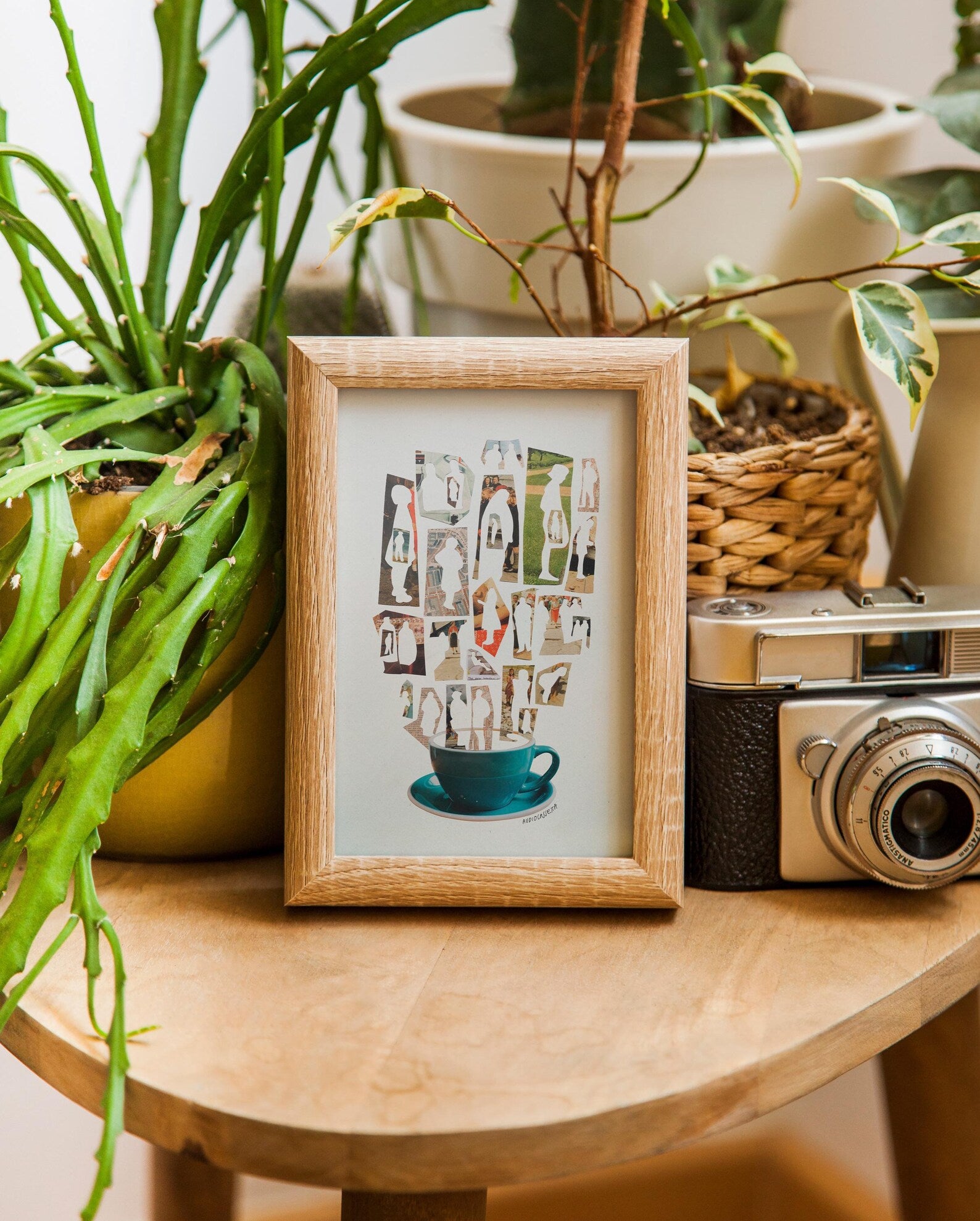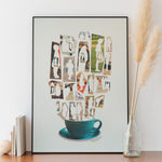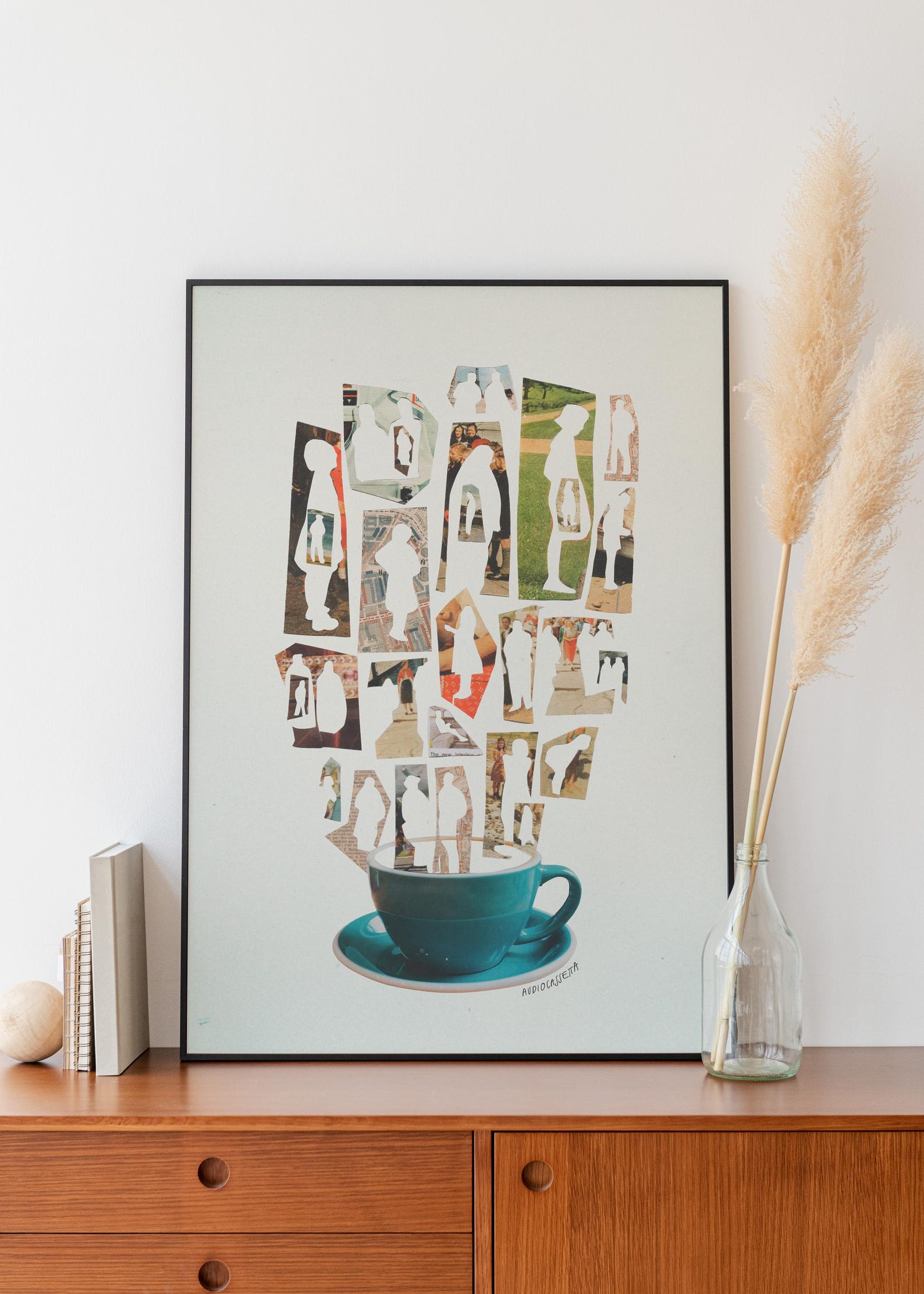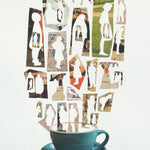 Il collage richiama quella sensazione di nebbia dei pensieri che avvolge chi si trova al bar, a sorseggiare un tè caldo. Le persone intorno a te si muovono, entrano ed escono, mentre le guardi senza pensieri, lasciando che il tempo scorra lentamente. Allo stesso tempo, la mente può tornare a chi ti è caro, alle persone che hai amato o che ami ancora.
